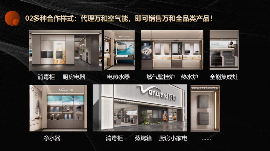 他著重強(qiáng)調(diào),萬(wàn)和創(chuàng)新推出全品類(lèi)、全渠道融合政策,打破渠道與品類(lèi)經(jīng)營(yíng)壁壘,增強(qiáng)渠道與門(mén)店綜合競(jìng)爭(zhēng)力和盈利能力,實(shí)現(xiàn)萬(wàn)和全品類(lèi)融合經(jīng)營(yíng)。無(wú)論100㎡的品牌專(zhuān)賣(mài)店,還是60㎡KA/TOP地標(biāo)連鎖門(mén)店,均可實(shí)現(xiàn)全品類(lèi)出樣。加盟萬(wàn)和空氣能,廚電、燃熱、電熱產(chǎn)品采用“只上樣、不囤貨、不安裝”的模式,大幅降低經(jīng)營(yíng)壓力,讓合作伙伴輕松賺取差價(jià),高效盤(pán)活門(mén)店資源。加盟萬(wàn)和空氣能,即可上樣廚電、燃熱、電熱產(chǎn)品,無(wú)需囤貨安裝,輕松賺差價(jià)!