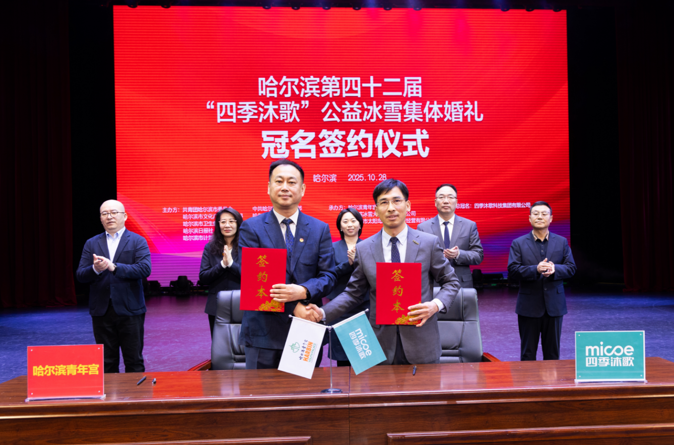 儀式上,哈爾濱青年宮與四季沐歌集團完成簽約,同步啟動全國新人征集。即日起至2025年12月12日,全國適齡新人可通過四季沐歌集團公眾號“婚禮報名”入口踴躍報名,婚禮盛典將于2026年1月6日在哈爾濱冰雪大世界啟幕,新人們將在冰雕城堡前交換誓言。