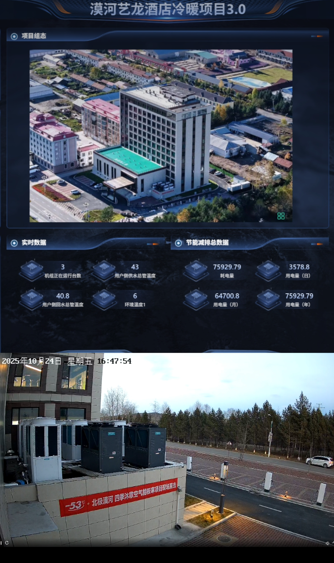 10月,極北漠河,四季沐歌漠河藝龍酒店項目開啟線上直播,日行實時動態(tài)數(shù)據(jù)面向公眾開放。關注“四季沐歌清潔采暖熱水”視頻號,每日定時直播,線上實時觀測四季沐歌漠河酒店供暖系統(tǒng)運行狀態(tài)。