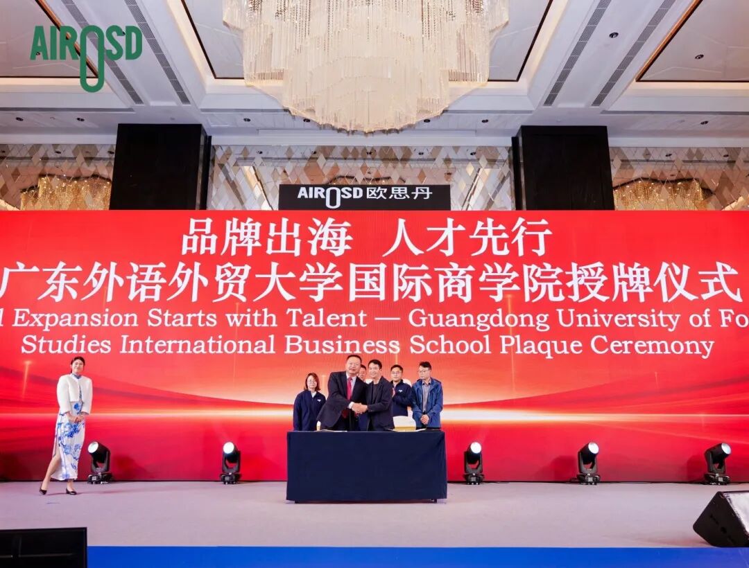 “品牌出海,人才先行。” 全球化競(jìng)爭(zhēng)的核心,歸根到底是人才的競(jìng)爭(zhēng)。盛典現(xiàn)場(chǎng),歐思丹與廣東外語(yǔ)外貿(mào)大學(xué)國(guó)際商學(xué)院舉行校企合作授牌簽約儀式,學(xué)院戰(zhàn)略與創(chuàng)新系主任祝振鐸、招生和校友辦公室副主任黃冠富等校方代表蒞臨出席。雙方將攜手構(gòu)建 “產(chǎn)學(xué)研” 一體化人才培養(yǎng)與輸送機(jī)制,為歐思丹品牌全球化布局儲(chǔ)備高素質(zhì)國(guó)際化專業(yè)人才,筑牢企業(yè)長(zhǎng)遠(yuǎn)發(fā)展的人才根基。