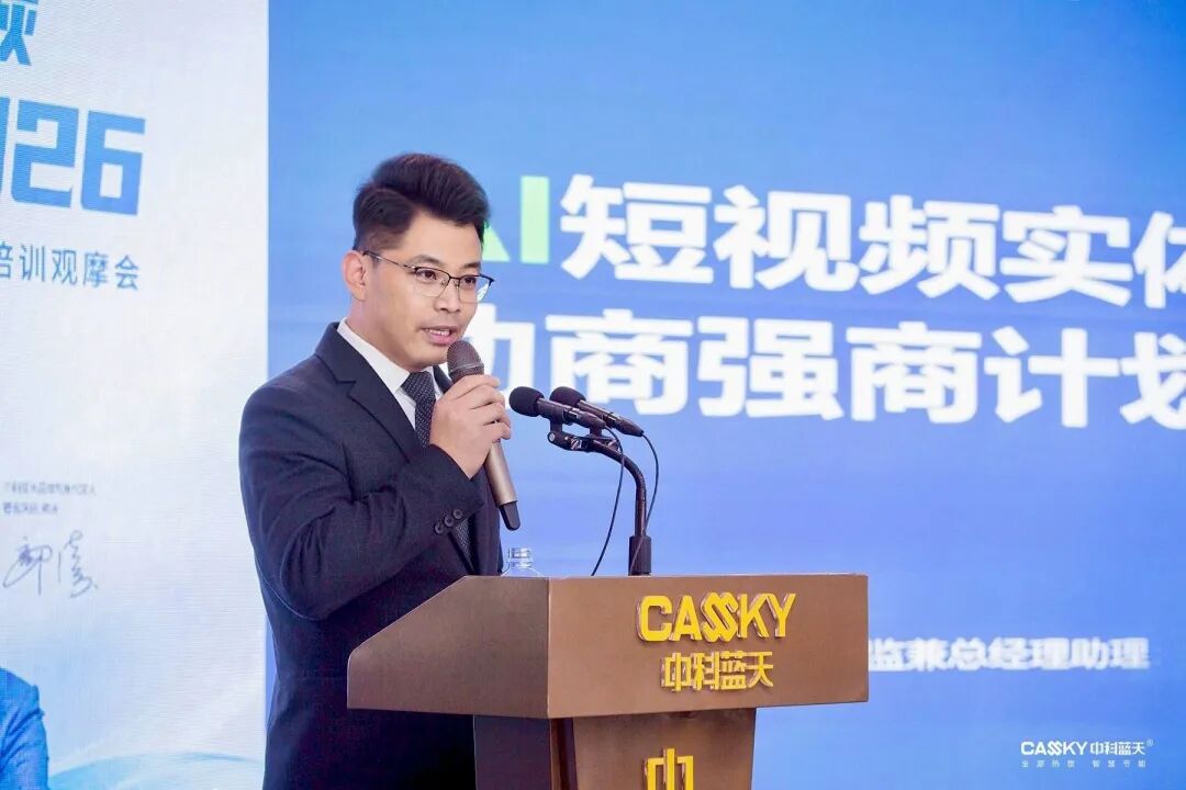 針對工程領域的獲客難題,中科藍天集團總經(jīng)理助理、市場部總監(jiān)田道剛分享《AI短視頻實體企業(yè)賦能一助商強商計劃》主題演講。2026年,中科藍天將為工程商提供全流程系統(tǒng)培訓、爆款素材庫、AI智能工具、全流域流量扶持、本地IP打造、談單轉化、長期陪跑七大賦能支持。