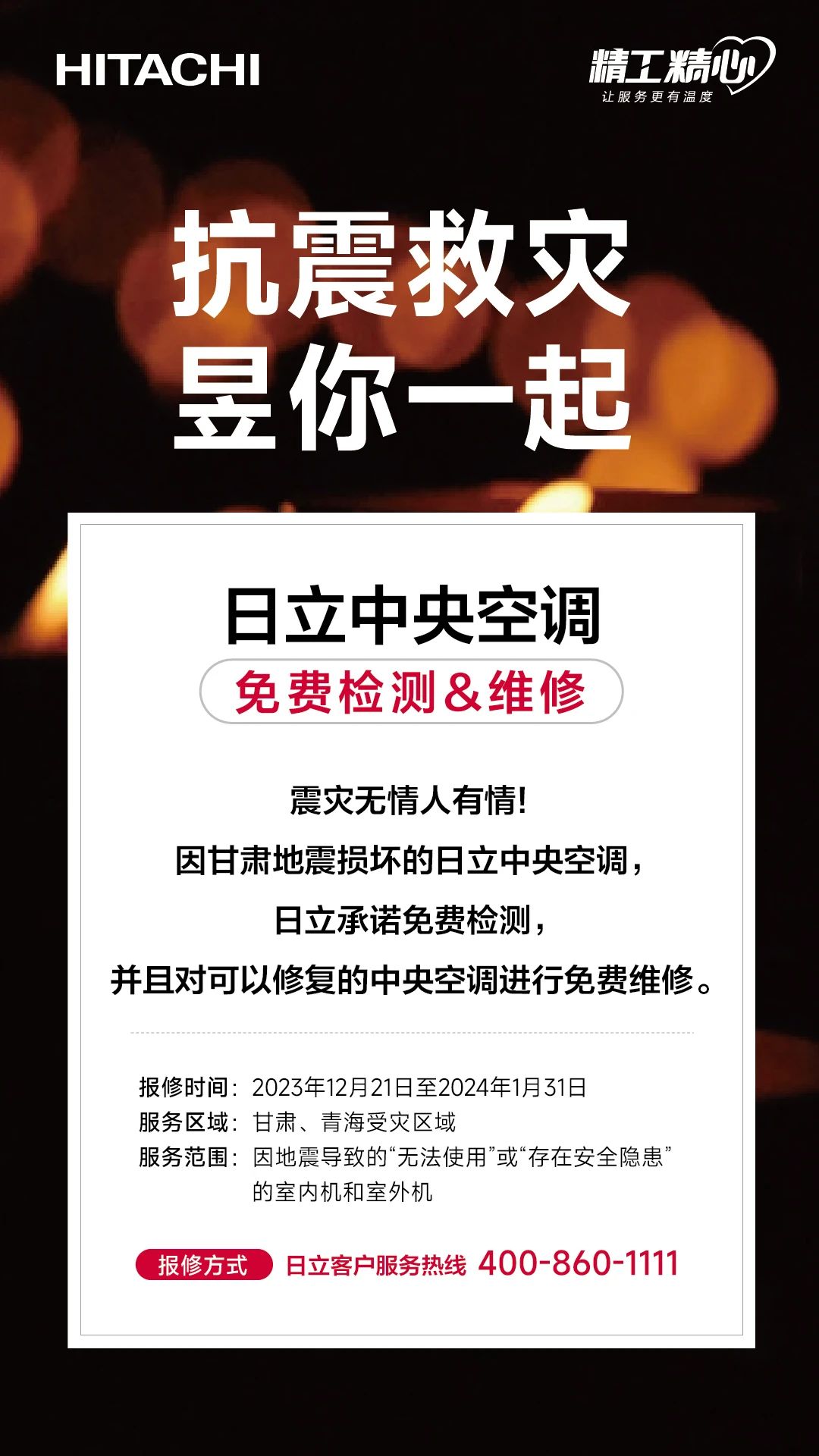 日立中央空調(diào) 抗震救災(zāi)免費(fèi)維修通知