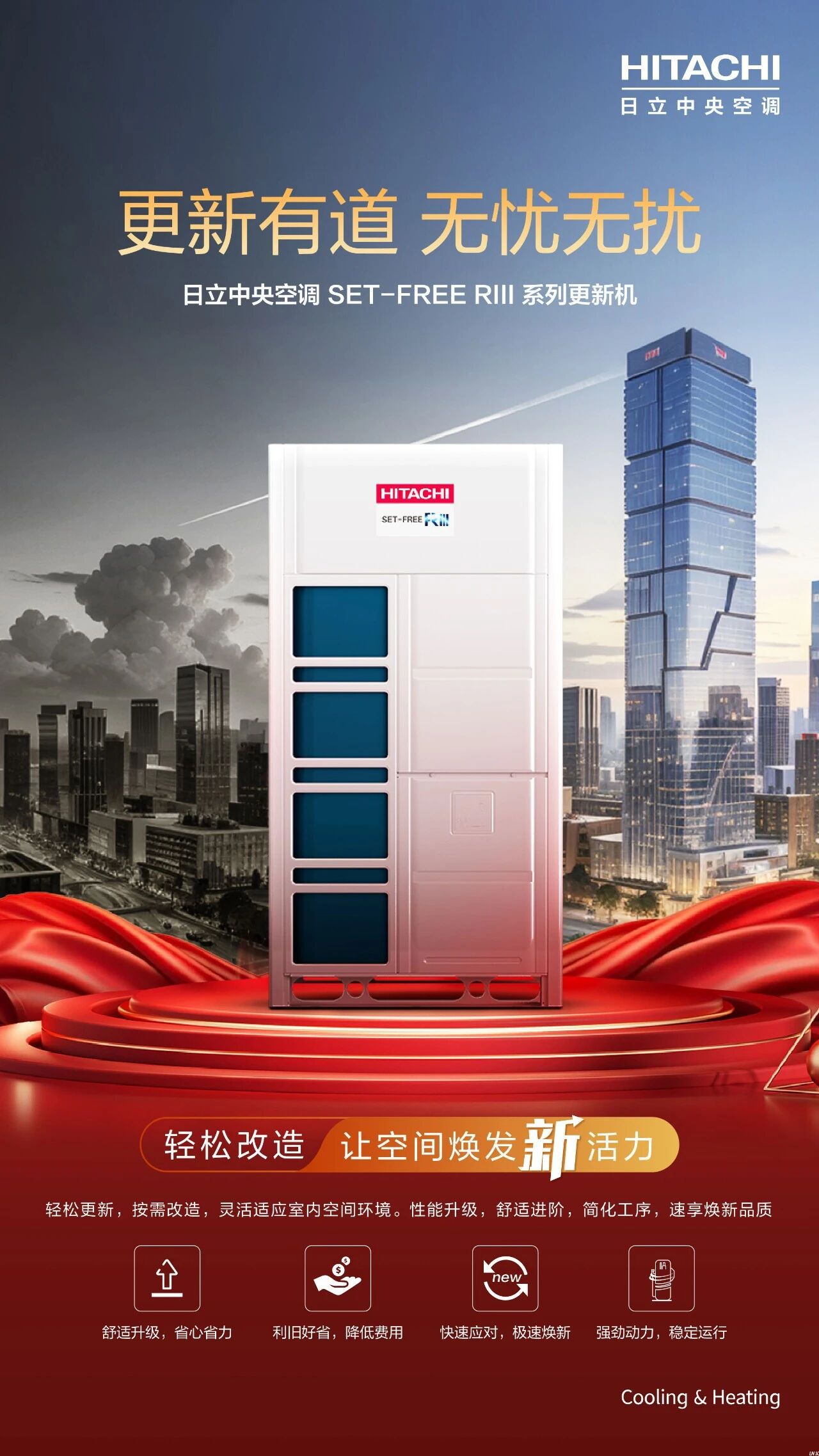 百年日立,始終以創(chuàng)新為引擎,積極回應(yīng)社會(huì)課題。其中,以“更新有道,榮耀煥新”為理念,日立SET-FREE RIII更新系列頂出風(fēng)多聯(lián)機(jī),憑借硬核科技實(shí)力,集強(qiáng)勁動(dòng)力、舒適體驗(yàn)、成本優(yōu)化與極速安裝等優(yōu)勢(shì)于一體,為建筑改造提供高效節(jié)能的解決方案。該系列產(chǎn)品亦將隆重亮相,帶來(lái)日立在綠色低碳領(lǐng)域的深刻思考與實(shí)踐成果。