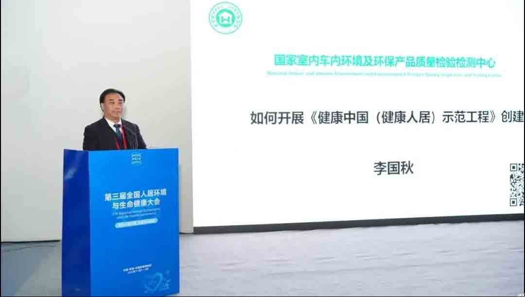 國家室內(nèi)車內(nèi)環(huán)境及環(huán)保產(chǎn)品質(zhì)量檢測中心主任李國秋作健康中國行動——健康人居檢測與認(rèn)證項目介紹