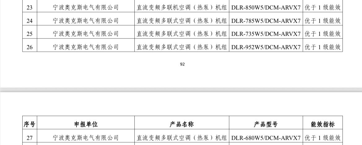 奧克斯ARV-X7多聯(lián)機(jī)組入選國家級節(jié)能降碳目錄