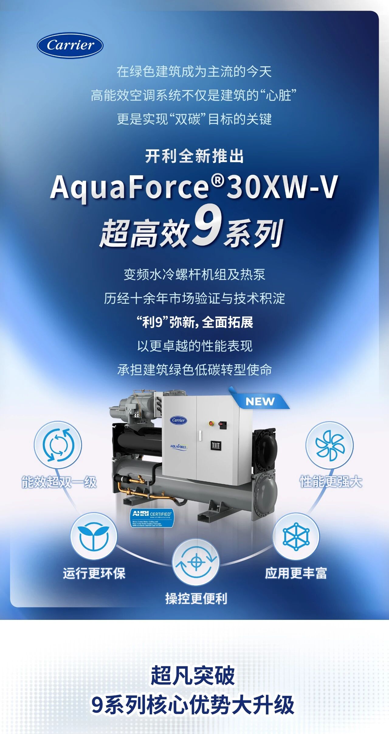 開利產(chǎn)品 | “利9”彌新,AquaForce?30XW-V超高效9系列重磅升級