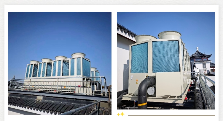 MHZ機(jī)組采用環(huán)保R32冷媒,超高的能效比意味著更低的碳排放,這與蘇州吳宮某高端酒店可持續(xù)發(fā)展的企業(yè)社會責(zé)任理念高度契合,共同塑造了綠色、高端的品牌形象。