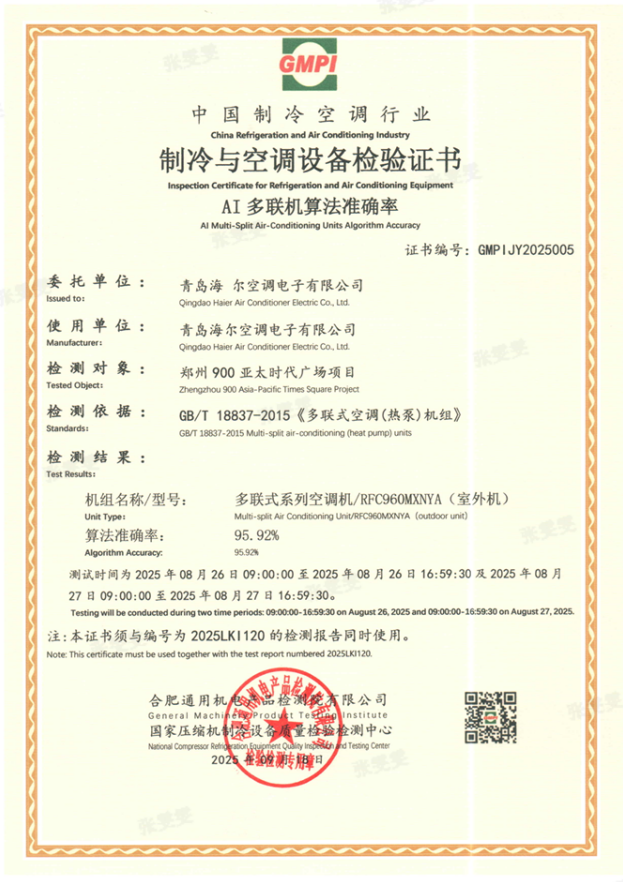 (鄭州亞太時(shí)代廣場(chǎng)海爾AI多聯(lián)機(jī)節(jié)能檢測(cè)數(shù)據(jù))