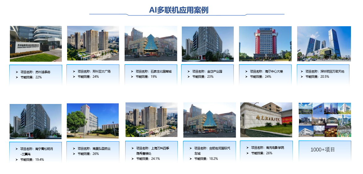 在杭州南湖未來(lái)科技園內(nèi),開(kāi)啟AI智控模式后,每月可多省約5000kWh;在南昌弘益藥業(yè),海爾AI多聯(lián)機(jī)節(jié)能率達(dá)到26%,南充電影學(xué)院節(jié)能26%、金岱產(chǎn)業(yè)園節(jié)能23%、深圳坂田萬(wàn)致天地節(jié)能20.5%……
