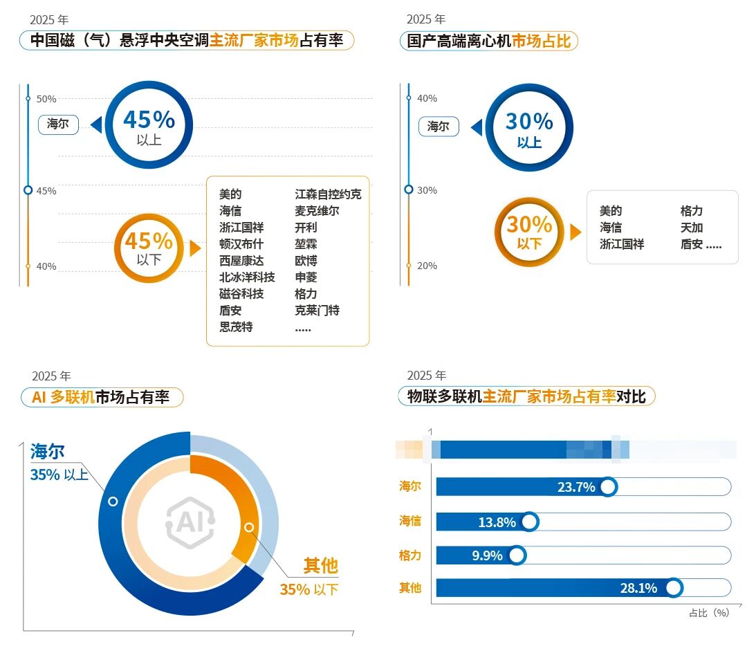 在磁懸浮中央空調(diào)領(lǐng)域,海爾以超45%的市場(chǎng)份額斬獲中國(guó)第一。作為國(guó)內(nèi)最早布局該領(lǐng)域的企業(yè),海爾領(lǐng)銜發(fā)布行業(yè)首個(gè)無油懸浮國(guó)家標(biāo)準(zhǔn),為行業(yè)確立統(tǒng)一準(zhǔn)則;依托無油懸浮技術(shù)及綜合能源管理平臺(tái),實(shí)現(xiàn)高效機(jī)房綜合節(jié)能率超50%,展現(xiàn)出扎實(shí)的技術(shù)底蘊(yùn)與創(chuàng)新實(shí)力。