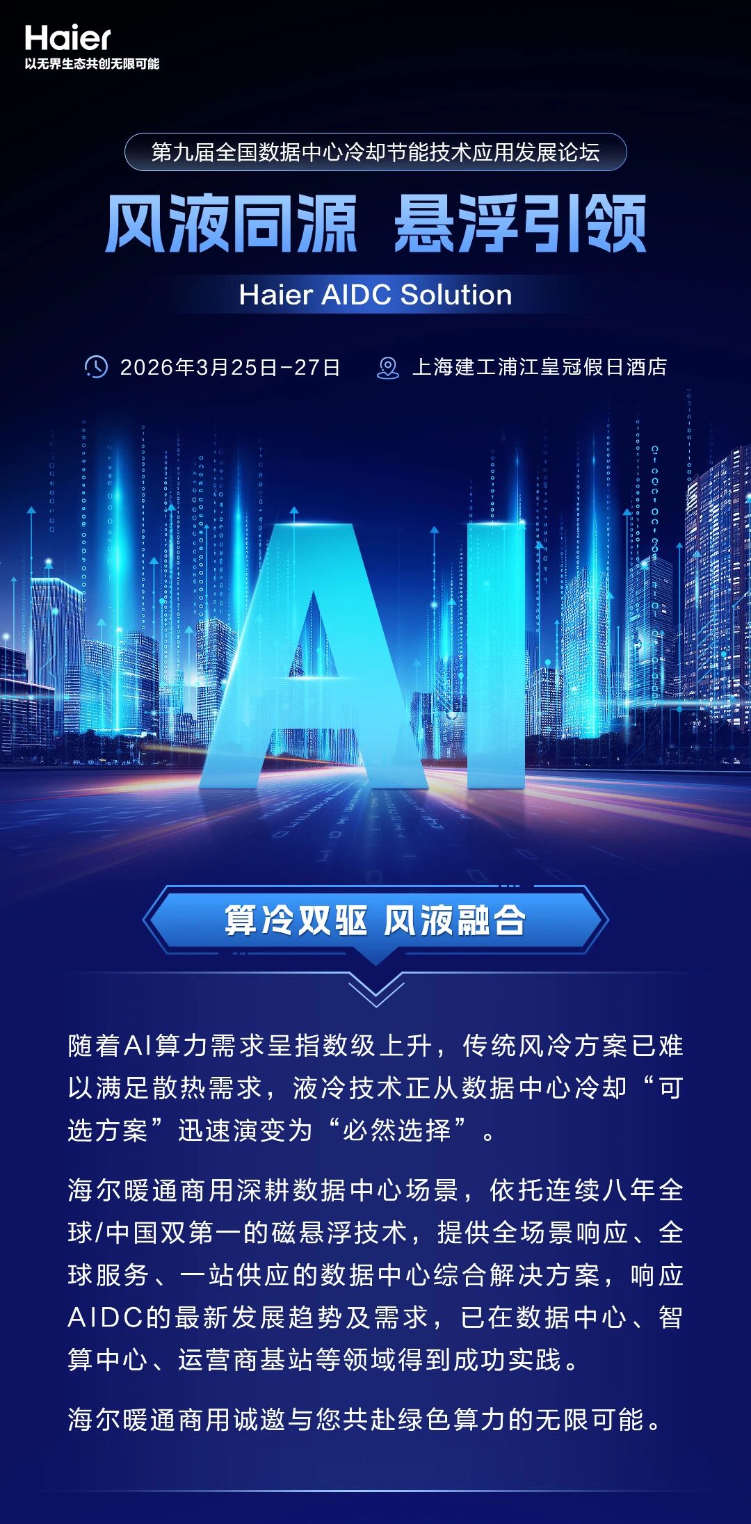 風液同源 懸浮引領 | 海爾暖通商用邀您相約第九屆全國數據中心冷卻節(jié)能技術應用發(fā)展論壇