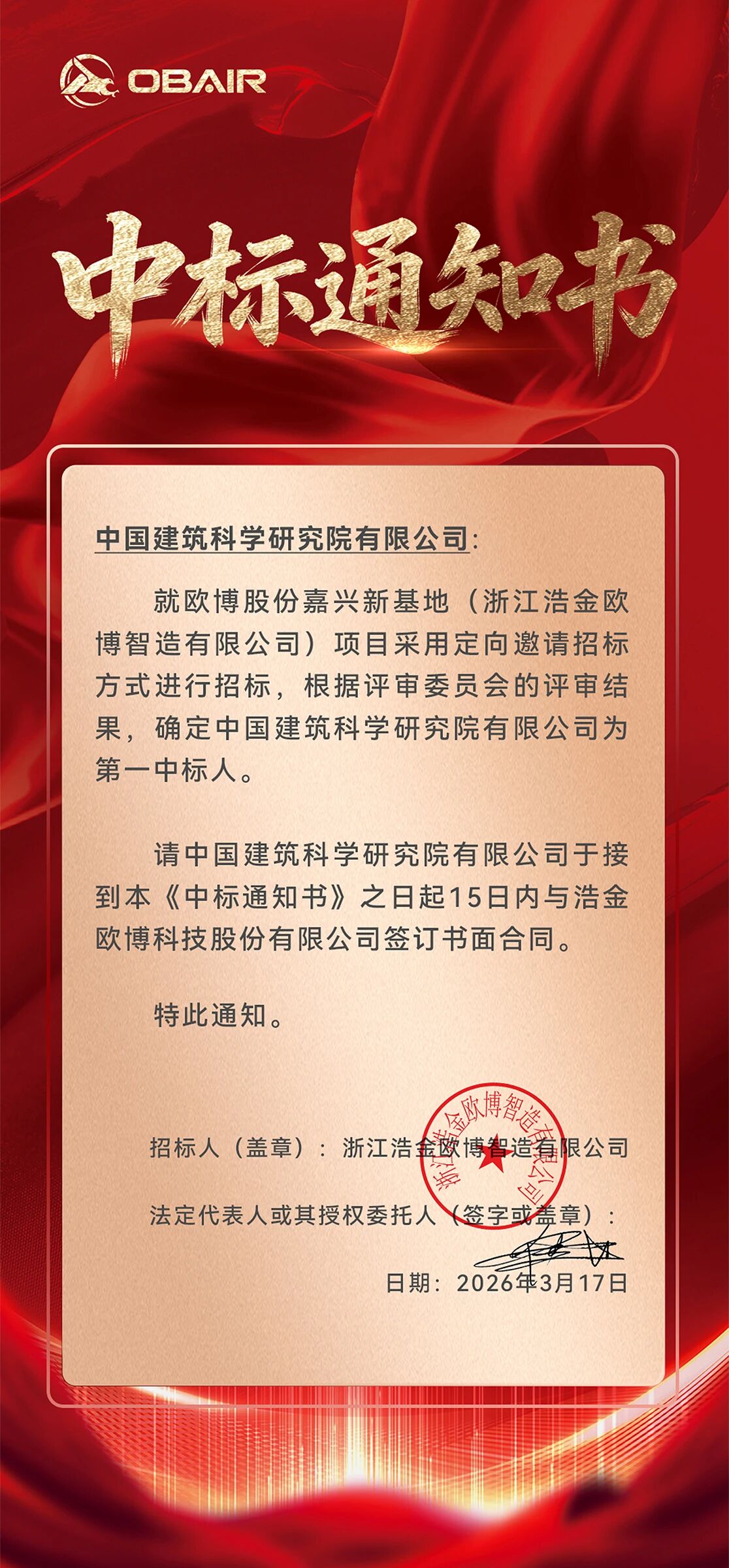 中標結果的揭曉,意味著歐博空調華東總部智能制造基地的建設,即將從宏偉藍圖走向實景畫卷!