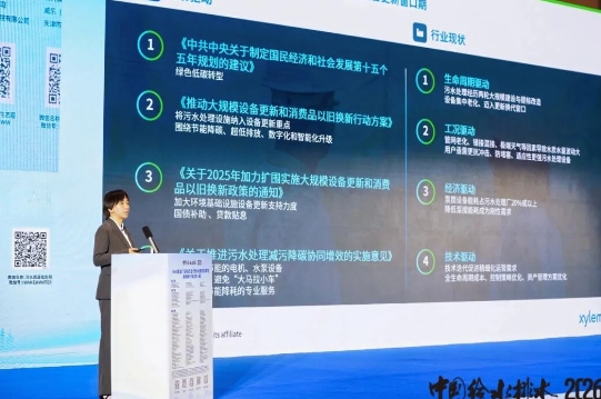 賽萊默中國水基礎(chǔ)設(shè)施應(yīng)用經(jīng)理李芳針對潛水設(shè)備改造方案研究:助力污水廠節(jié)能降本作了主題演講,向在場的1000多位污水提標(biāo)改造和提質(zhì)增效、污水資源化利用等領(lǐng)域的專家和用戶,簡明扼要地講解了涵蓋設(shè)備優(yōu)化、智能控制和數(shù)字化管理的賽萊默全方位解決方案,助力污水廠泵站提升能效、降低碳排放,實現(xiàn)高效穩(wěn)定運行。