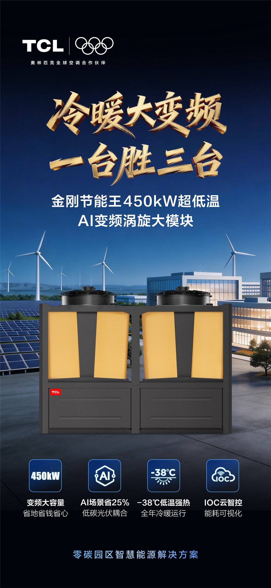 冷暖大變頻 一臺(tái)勝三臺(tái)!TCL新品450kW超低溫AI變頻渦旋大模塊賦能零碳園區(qū)建設(shè)-冷暖資訊-冷暖商情