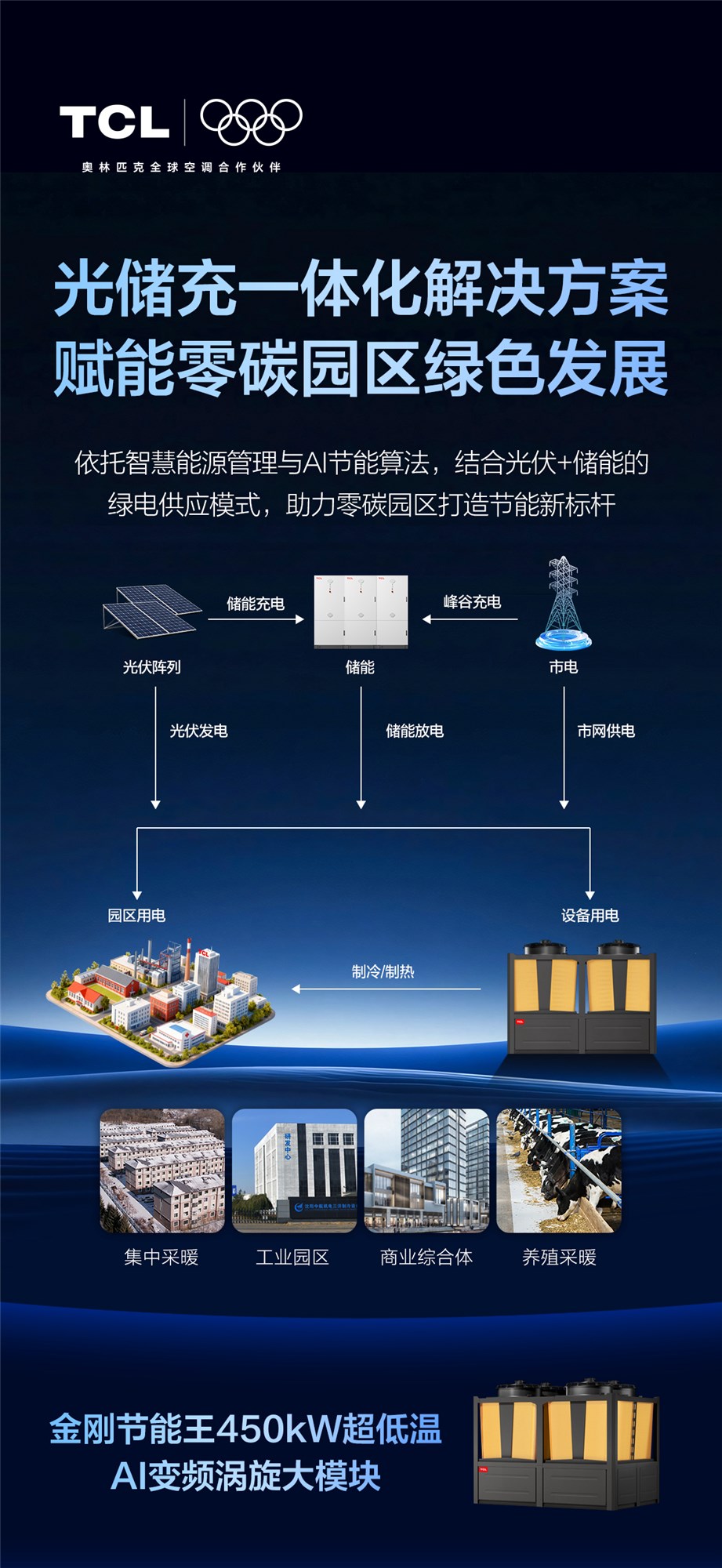 在此背景下,TCL商用空調(diào)精準(zhǔn)把握全國(guó)零碳園區(qū)建設(shè)需求,重磅推出金剛節(jié)能王450kW超低溫AI變頻渦旋大模塊,依托智慧能源管理與AI節(jié)能算法,打造適配全國(guó)各類園區(qū)的零碳智慧能源解決方案,助力各地園區(qū)打造節(jié)能降碳新標(biāo)桿。