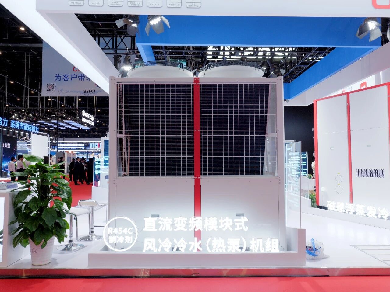 此外,現(xiàn)場還展出了應(yīng)用靈活的直流變頻模塊式風(fēng)冷冷水(熱泵)機組。