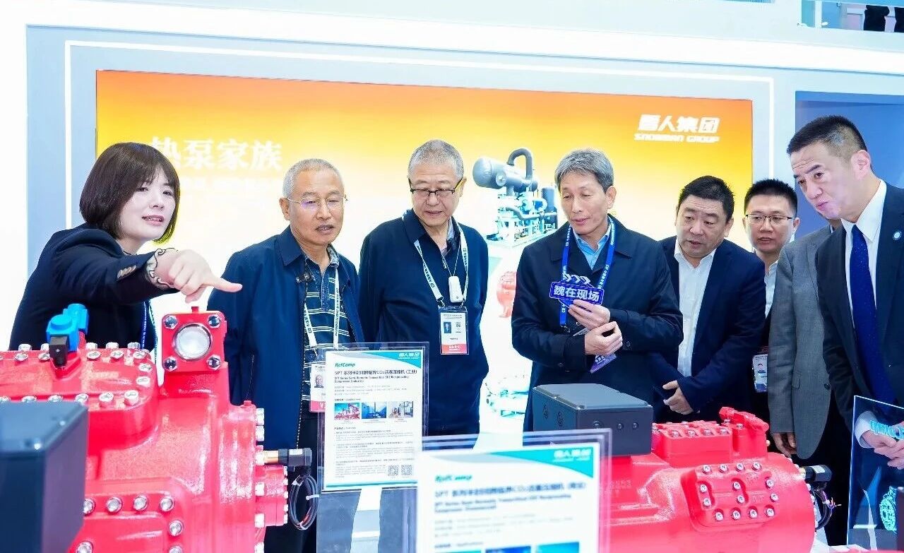 中國(guó)制冷展第一日上午,中國(guó)制冷展專家委員會(huì)的幾位行業(yè)頂尖專家到訪雪人展臺(tái),就SPT系列二氧化碳跨臨界活塞壓縮機(jī)(工業(yè)版)的技術(shù)創(chuàng)新與工程可靠性進(jìn)行了深入交流,并給予了高度認(rèn)可。