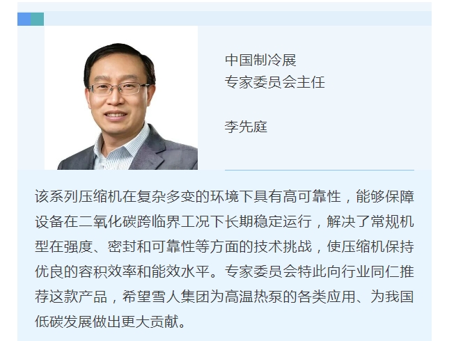 中國(guó)制冷展第二日,制冷展專家委員會(huì)主任,清華大學(xué)李先庭教授出席“雪人時(shí)刻”慶典儀式,代表委員會(huì)對(duì)雪人集團(tuán)SPT系列二氧化碳跨臨界活塞壓縮機(jī)(工業(yè)版)進(jìn)行點(diǎn)評(píng)。