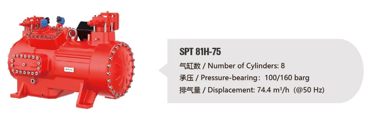 雪人集團(tuán)憑借多年技術(shù)積累,成功研發(fā)并提出SPT系列CO?跨臨界活塞壓縮機(jī)(工業(yè)版),填補(bǔ)了這一行業(yè)空白。