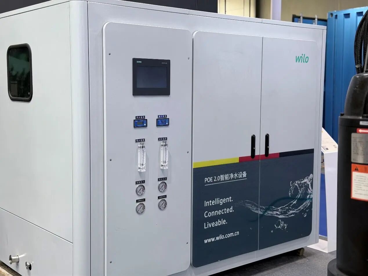 隨著人們對健康飲水需求的日益增長, Wilo-POE 2.0 智能凈水設(shè)備占據(jù)了展臺的重要位置。該設(shè)備采用工業(yè)級多級過濾與殺菌工藝,出水水質(zhì)鮮活安全,實現(xiàn)了從“安全水”到“健康好水”的升級,為學校、醫(yī)院、高端社區(qū)等場景的管道直飲水建設(shè)提供了可靠選擇。