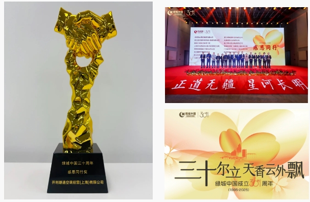 賀慶而立,開利家用及輕商獲綠城中國(guó)三十周年“感恩同行獎(jiǎng)”