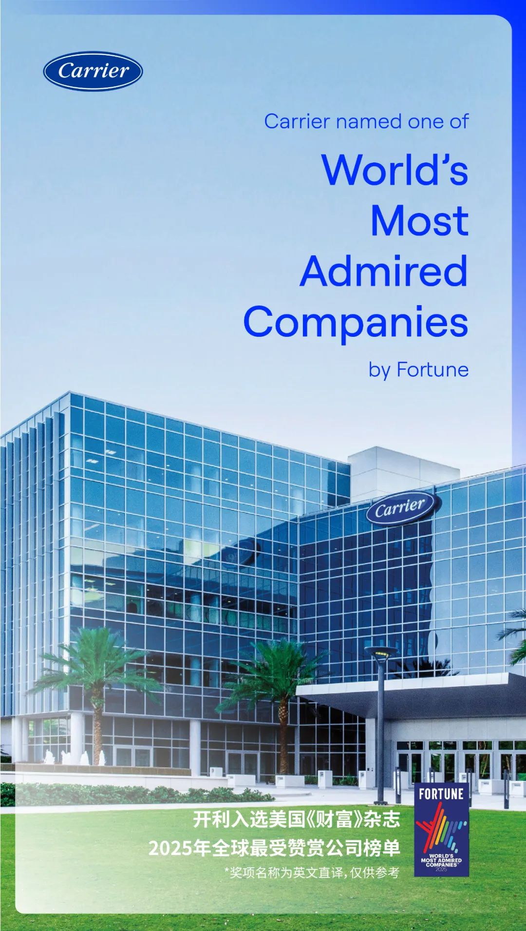 連續(xù)四年上榜!開利又雙叒叕入選《財富》2025全球最受贊賞公司榜單!