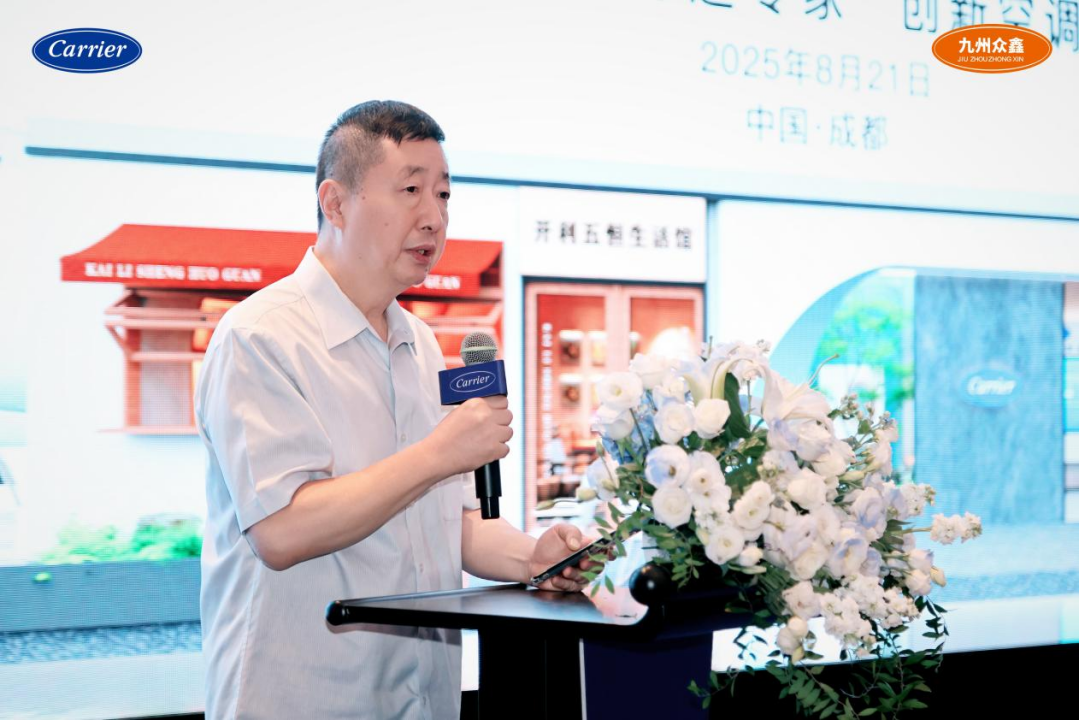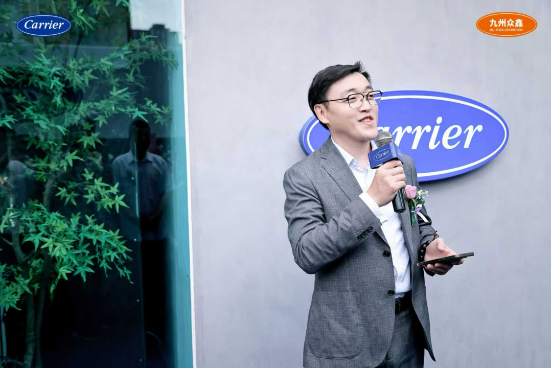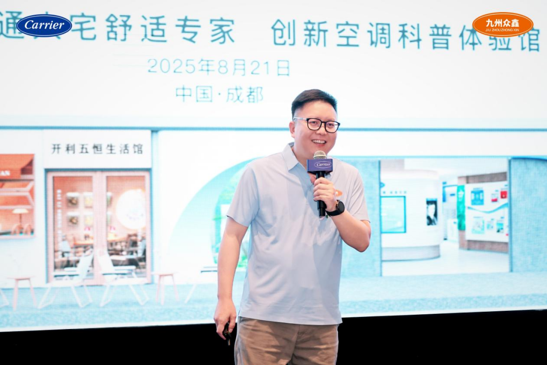 作為東道主,九州眾鑫集團(tuán)董事長(zhǎng)王連鋒先生以一位深耕行業(yè)多年的“老兵”視角,分享了其逆勢(shì)投入的思考與信念。在開利空調(diào)123周年的歷史性時(shí)刻,他選擇在成都打造這樣一個(gè)空調(diào)科普體驗(yàn)館,以期為行業(yè)與社會(huì)創(chuàng)造長(zhǎng)期價(jià)值。他特別感謝開利集團(tuán)及各品牌方的支持,并表示九州始終秉持長(zhǎng)期主義,致力于為美好生活而奮斗。他堅(jiān)信“危險(xiǎn)中有機(jī)遇”,將攜手團(tuán)隊(duì)勇于創(chuàng)新、堅(jiān)定前行,持續(xù)為行業(yè)與社會(huì)貢獻(xiàn)力量。