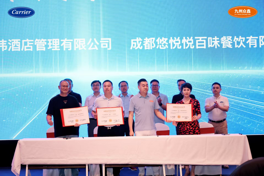 如果說體驗(yàn)中心的落成是“產(chǎn)品與場(chǎng)景”的落地,那么開業(yè)盛典現(xiàn)場(chǎng)密集的戰(zhàn)略簽約,則是九州暖通/九州綠建“鏈接產(chǎn)業(yè)資源、構(gòu)建生態(tài)閉環(huán)”的關(guān)鍵一步。作為九州眾鑫集團(tuán)旗下核心企業(yè),九州暖通與九州綠建憑借在“產(chǎn)品服務(wù)”與“工程落地”的雙重優(yōu)勢(shì),現(xiàn)場(chǎng)達(dá)成多項(xiàng)戰(zhàn)略合作,覆蓋地產(chǎn)、酒店餐飲、建筑裝飾等多個(gè)領(lǐng)域,進(jìn)一步完善了從“解決方案”到“落地交付”的產(chǎn)業(yè)鏈條。