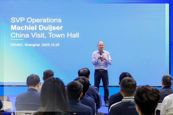 訪問期間,Machiel在上海、杭州分別召開員工大會(Townhall),與核心運營團隊進行深入交流,慶祝開利一冷工廠30周年,并回顧“開利制造月”活動精彩時刻。同時,Machiel在員工大會現(xiàn)場表彰了在創(chuàng)新致勝、客戶服務以及精進專業(yè)等方面取得優(yōu)異成就的團隊,鼓勵全員在保持全球視野的同時,創(chuàng)新本土化發(fā)展,加強制造環(huán)節(jié)的數(shù)字化和智能化,將安全與效率融入日常運營。