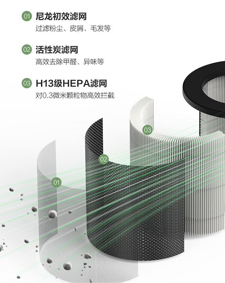 春季流感高發(fā),密閉空間空氣質(zhì)量令人堪憂。新品螢石空氣凈化器Mini配備尼龍初效濾網(wǎng)+H13級HEPA復(fù)合濾網(wǎng)+活性炭,三層過濾,高效清除空氣污染物,還你清新好空氣。