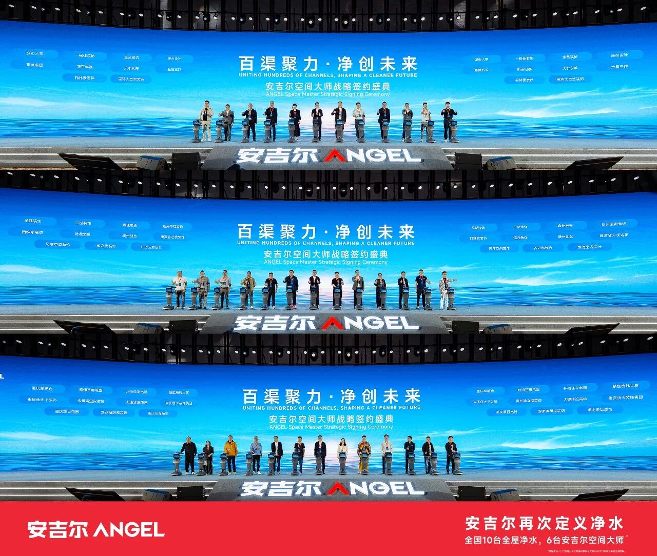 為進(jìn)一步推動(dòng)行業(yè)發(fā)展,安吉爾在現(xiàn)場舉行了“百渠聚力·凈創(chuàng)未來”全球渠道戰(zhàn)略簽約儀式,通過與全球合作伙伴的深度協(xié)同,整合渠道、服務(wù)與資源能力,構(gòu)建更加緊密的共贏生態(tài),加速全屋凈水解決方案的規(guī)?;涞?。