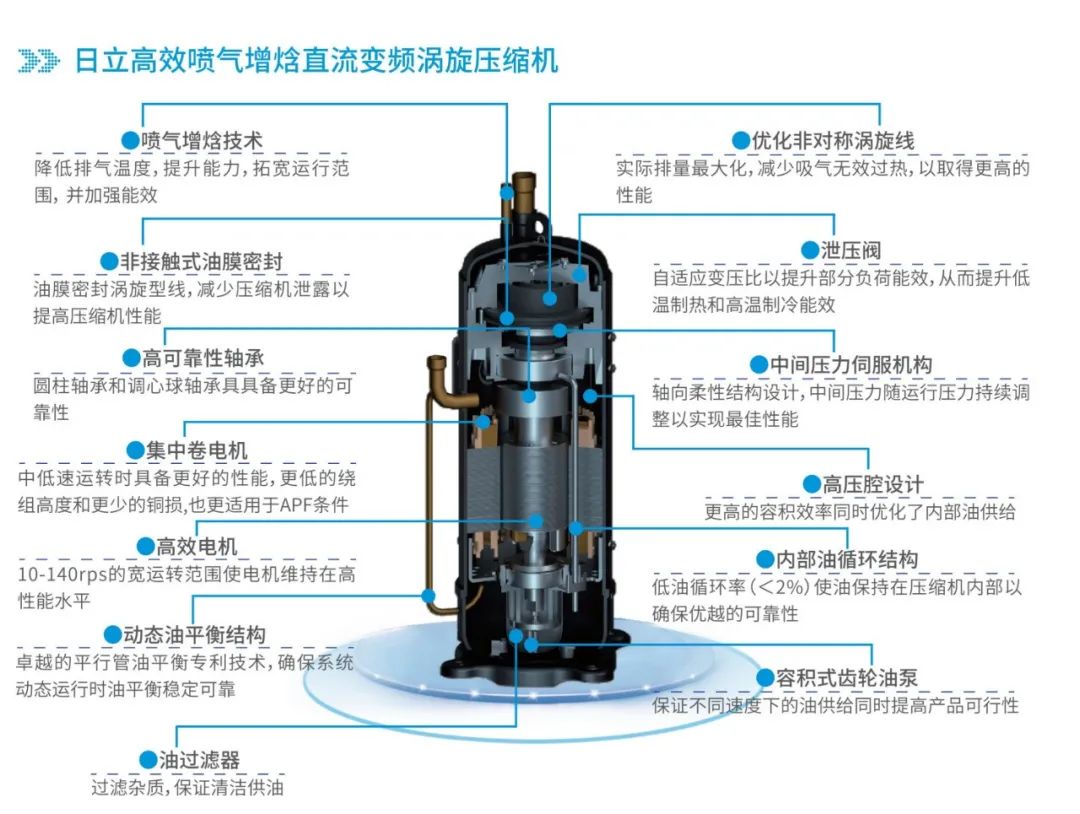 核心動(dòng)力源泉,部分負(fù)荷效率提升更加符合低環(huán)溫制熱機(jī)組運(yùn)行特點(diǎn),采用柔性渦旋壓縮機(jī)技術(shù),容積效率高,柔性密封,極大增加了抗液擊能力,效率高,壽命長(zhǎng)。