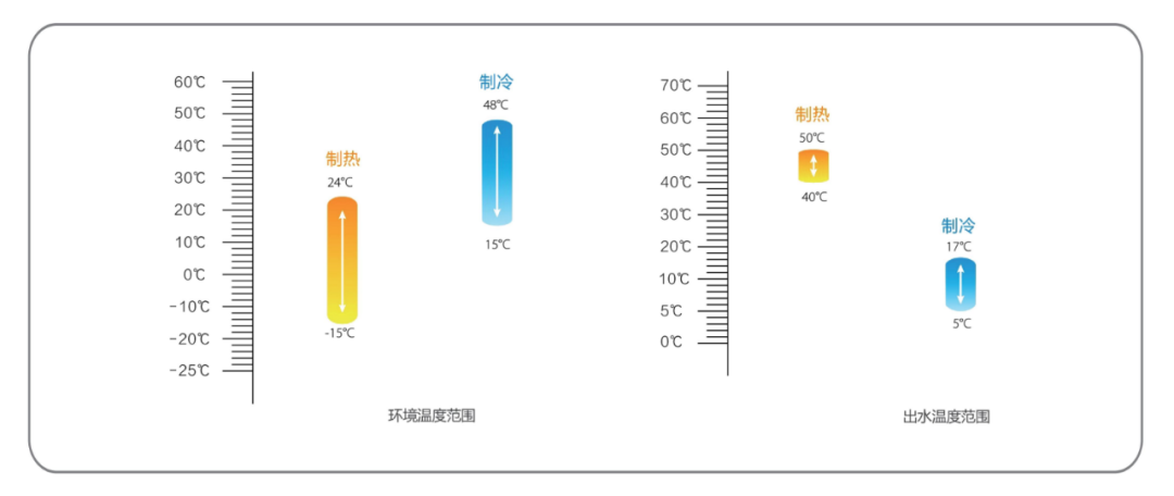 機(jī)組具有十分寬廣的適用范圍,可以在-15℃~48℃室外溫度下穩(wěn)定運(yùn)行。