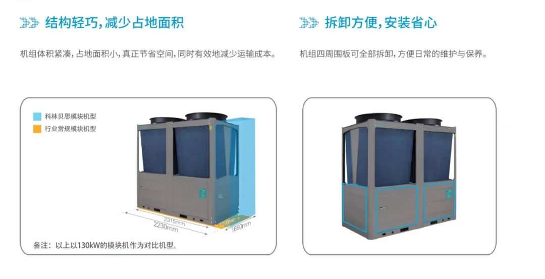 科林貝思秉承環(huán)保先行,效率至上的設(shè)計(jì)理念,融合了最新科技與精湛工藝,研發(fā)出的全新一代直流變頻風(fēng)冷熱泵模塊機(jī),擁有更加優(yōu)秀的性能和更全面智能化的功能 。時(shí)尚高端,簡(jiǎn)而不凡。