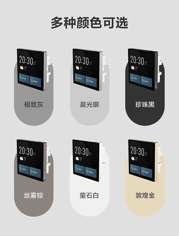 新品螢石多彩SP4中控屏,多彩色搭配極簡(jiǎn)外觀,輕松融入各類(lèi)家居風(fēng)格;六色可選:極致灰、敦煌金、珍珠黑、晨光銀、絲霧棕,螢石白。好看到?jīng)]朋友,或奢華、或優(yōu)雅,或簡(jiǎn)約、或浪漫。不論裝修風(fēng)格,自然融入,獨(dú)樹(shù)一幟。
