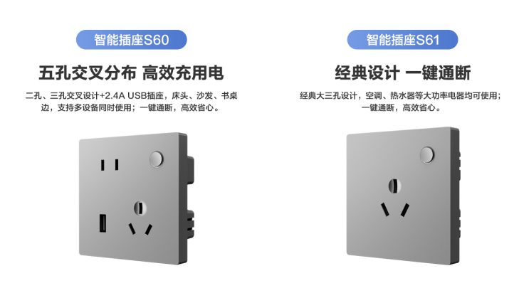 新品玲瓏系列 多彩版入墻式智能插座S60/S61