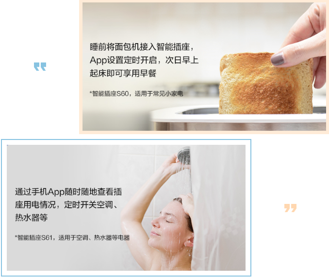 睡前將面包機(jī)接入智能插座,App設(shè)置定時開啟,次日早上起床即可享用早餐。(智能插座S60,適用于常見小家電)