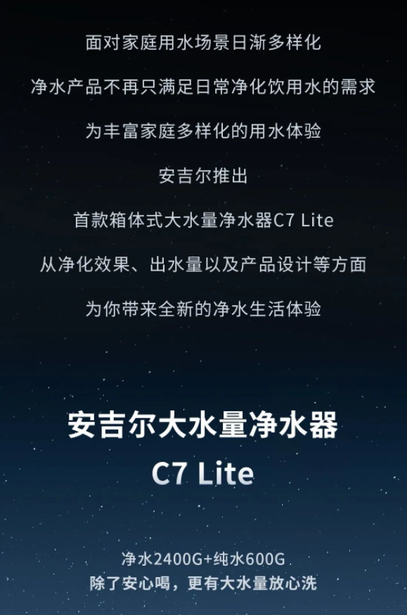 安吉爾C7 Lite 重磅上市,大水量凈水體驗再升級