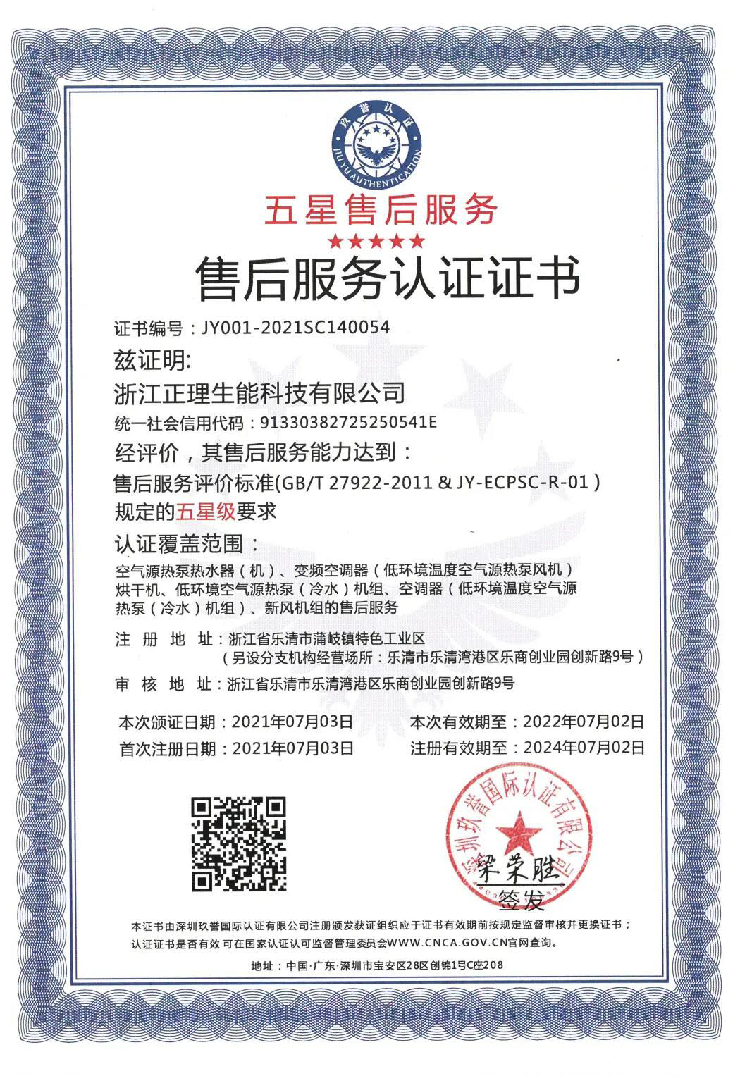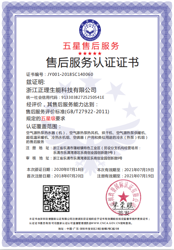 據(jù)悉,生能已連續(xù)四年獲評(píng)五星售后服務(wù)認(rèn)證。2018年,生能首次榮獲五星售后服務(wù)認(rèn)證證書(shū),2020年,生能復(fù)審達(dá)到售后服務(wù)評(píng)價(jià)標(biāo)準(zhǔn),再獲五星售后服務(wù)認(rèn)證證書(shū)。