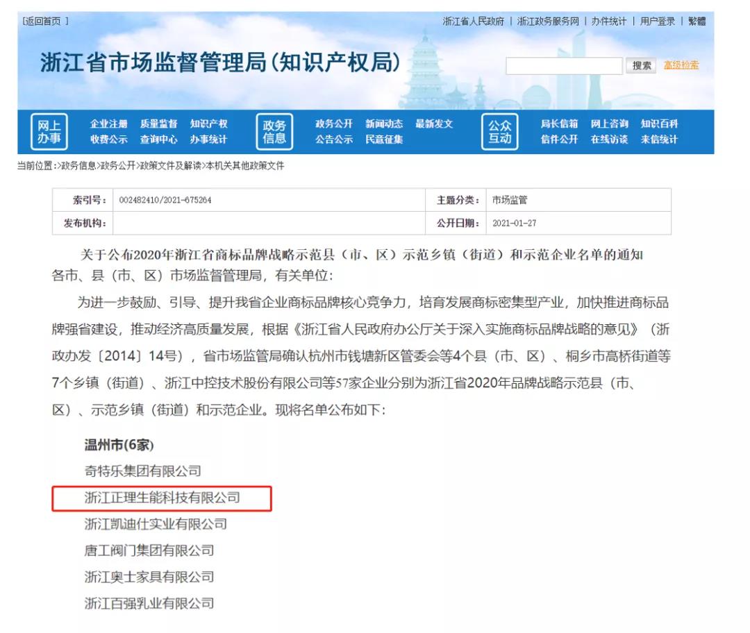 生能榮獲“浙江省商標(biāo)品牌戰(zhàn)略示范企業(yè)”