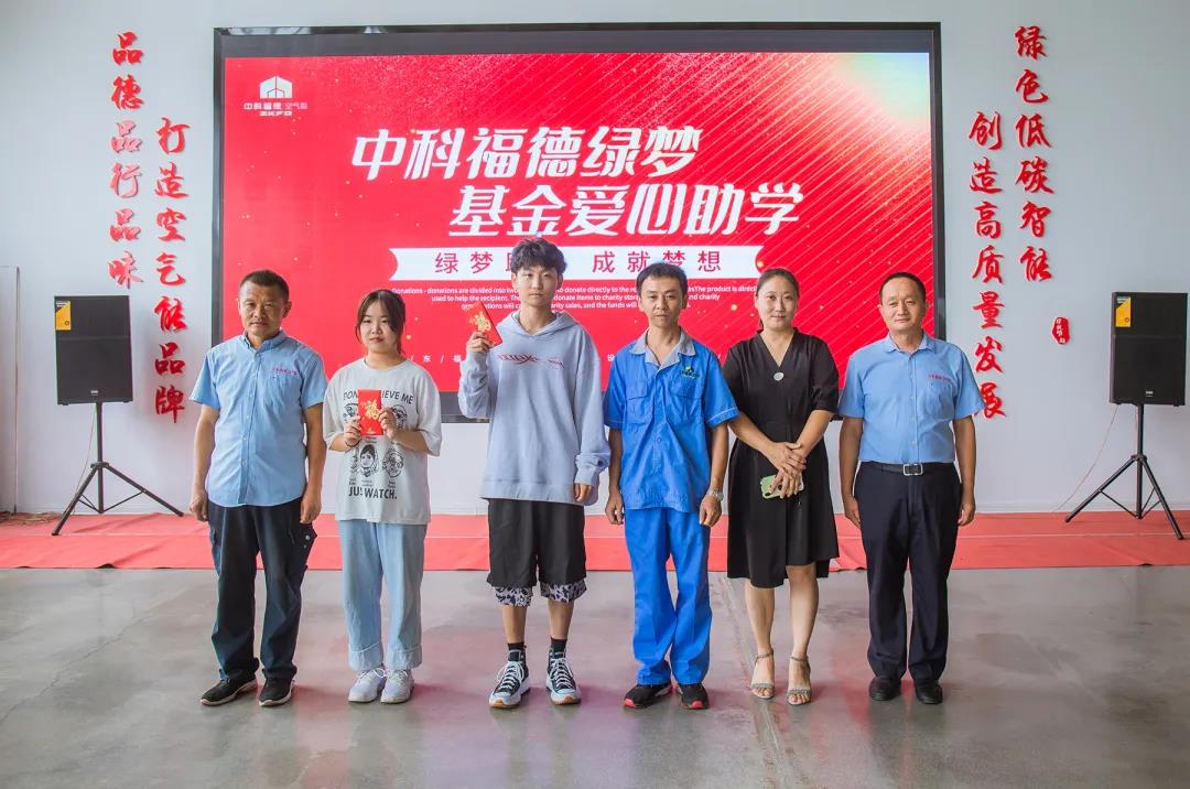 8月31日,中科福德舉行了一年一度的“綠夢助學(xué) 成就夢想”愛心助學(xué)活動。為即將啟程的莘莘學(xué)子送上祝福,并通過“綠夢基金”的助力,鼓勵他們勤奮求學(xué),成就不平凡的人生。