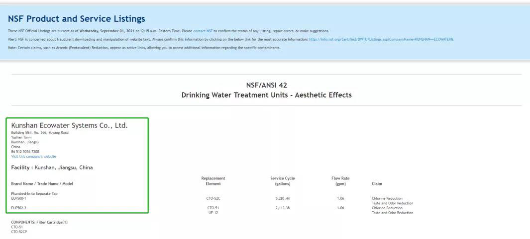 怡口全廚享愛系列產(chǎn)品EUF502-2和EUF500-1憑借卓越且穩(wěn)定的產(chǎn)品實(shí)力,經(jīng)過NSF International 超長(zhǎng)的送檢周期、嚴(yán)格的反復(fù)論證及高昂的檢測(cè)費(fèi)用等一系列考驗(yàn),成功獲得NSF整機(jī)認(rèn)證,被NSF正式列名。