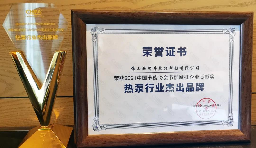 當(dāng)前,正處在“雙碳目標(biāo)”、能源減排的利好背景下,作為國內(nèi)熱泵領(lǐng)域的專業(yè)領(lǐng)導(dǎo)品牌之一,佛山歐思丹熱能科技有限公司(下稱:歐思丹)積極參與國際性的熱泵盛會(huì),獲取最新前沿技術(shù)、市場以及政策。在同期舉行的中國熱泵行業(yè)2021年表彰儀式上,歐思丹榮獲2021年中國節(jié)能協(xié)會(huì)節(jié)能減排企業(yè)貢獻(xiàn)獎(jiǎng)熱泵行業(yè)杰出品牌。