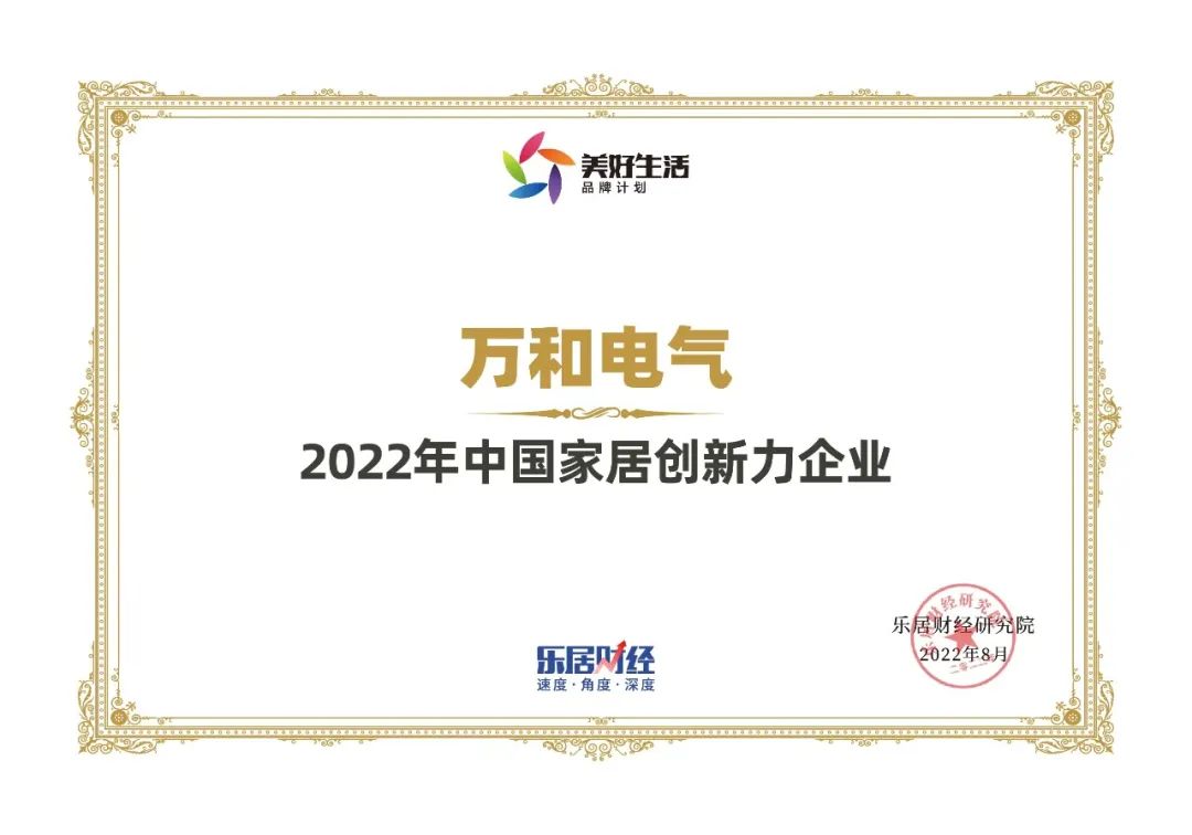 8月19日,由樂居財經(jīng)主辦的“追光:2022(第五屆)樂居財經(jīng)年度論壇暨財經(jīng)之夜”在杭州舉行,百位地產(chǎn)、家居和物業(yè)圈行業(yè)精英齊聚,共同尋找不動產(chǎn)折疊時代的追光之旅。在本次活動中,廣東萬和新電氣股份有限公司獲得“2022年中國家居創(chuàng)新力企業(yè)”殊榮。