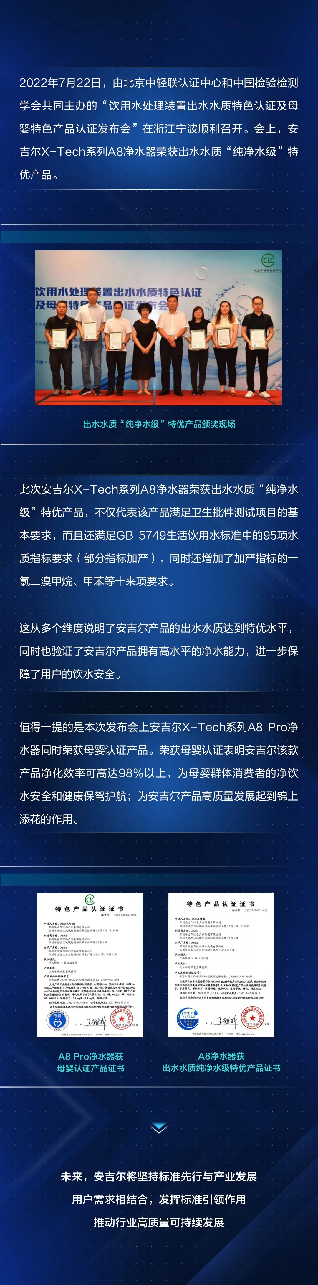 安吉爾X-Tech系列榮獲出水水質(zhì)純凈水級特優(yōu)產(chǎn)品