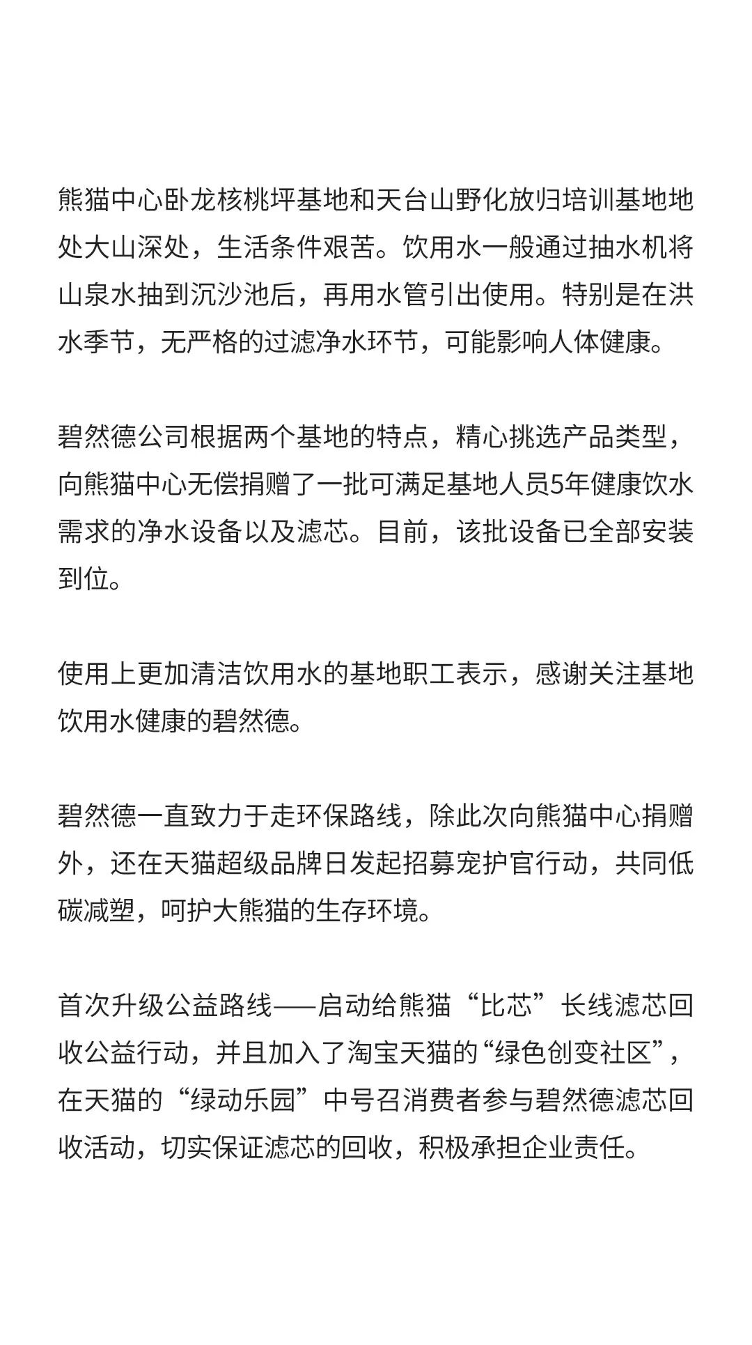 碧然德向熊貓中心捐贈一批凈水設(shè)備