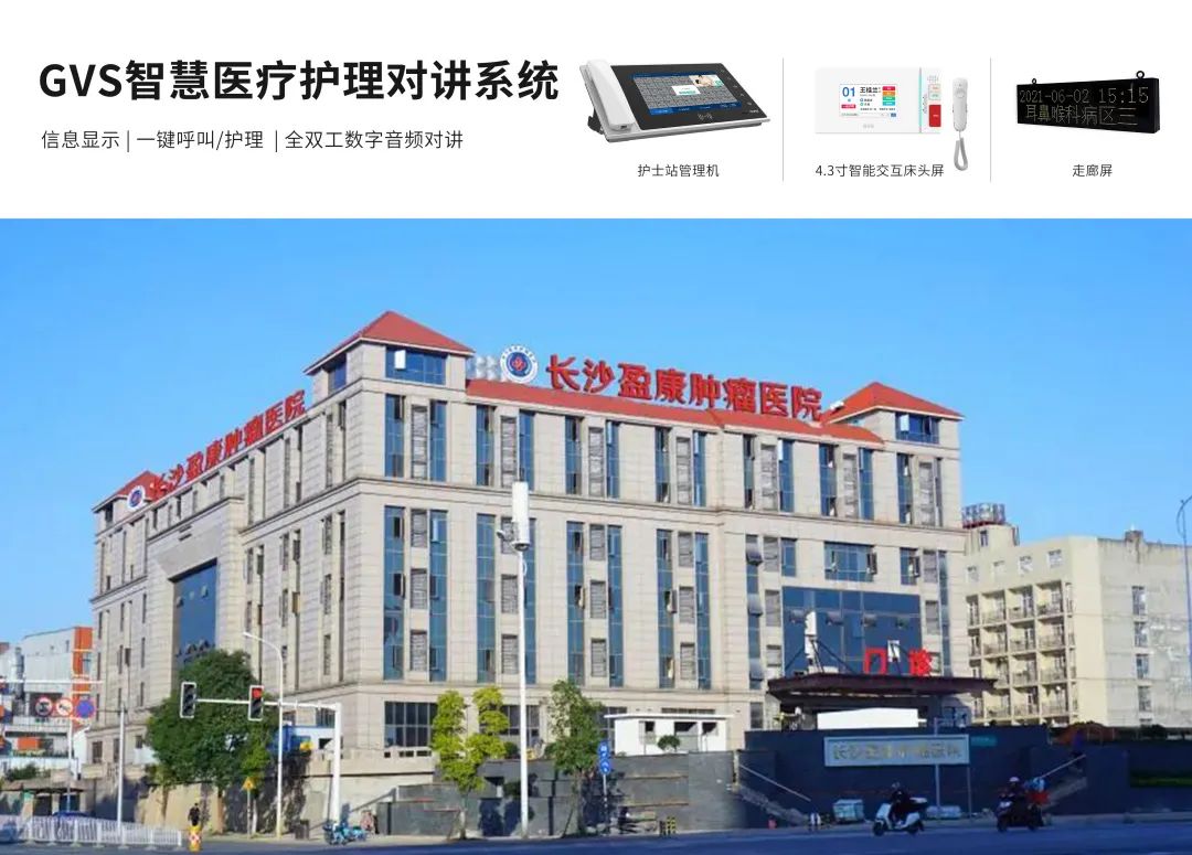 綜合醫(yī)護人員、患者體驗和醫(yī)院管理三大方面考慮,長沙盈康腫瘤醫(yī)院引入GVS智慧病區(qū)解決方案,定制了以智能交互床頭屏、護士站管理機、走廊屏等為核心產(chǎn)品的護理對講系統(tǒng),回應多方對健康服務的需求。