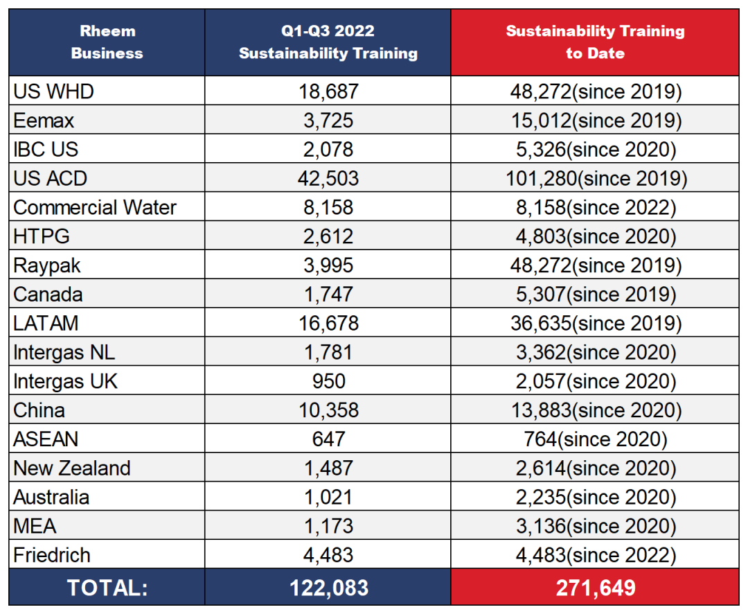 我們感到很驕傲,瑞美的全球業(yè)務(wù)提前實(shí)現(xiàn)了25萬影響者的培訓(xùn)里程碑,感謝GoodWorks培訓(xùn)大使和全球培訓(xùn)團(tuán)隊(duì)的共同努力,使Rheem真正成為可持續(xù)發(fā)展培訓(xùn)領(lǐng)域的行業(yè)領(lǐng)導(dǎo)者。雖然我們已經(jīng)提前完成目標(biāo),但可持續(xù)發(fā)展的事業(yè)將在瑞美永遠(yuǎn)“可持續(xù)”,歡迎更多的人加入瑞美的可持續(xù)發(fā)展事業(yè),助力暖通行業(yè)有序發(fā)展。