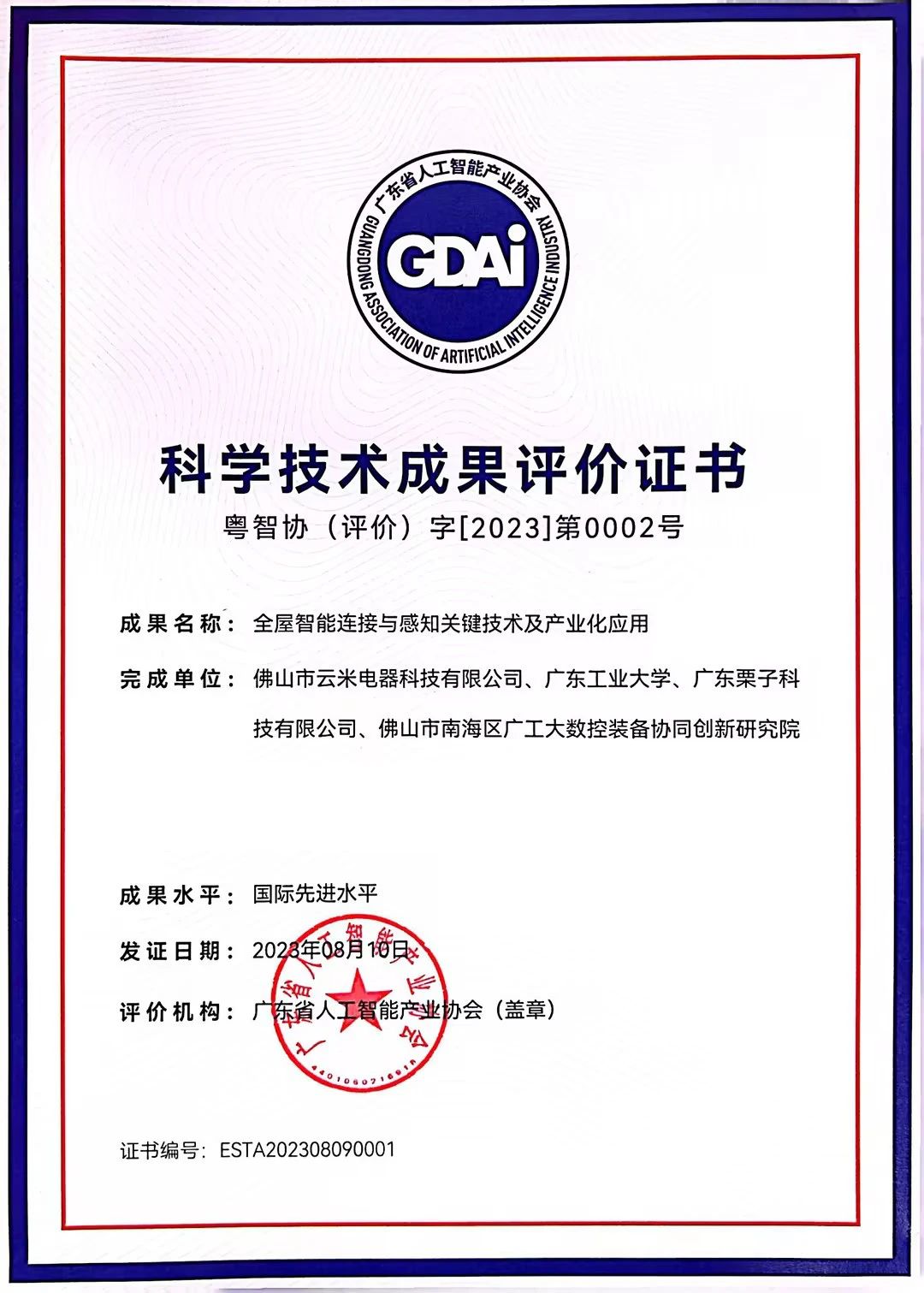 8月9日,廣東省人工智能產(chǎn)業(yè)協(xié)會(huì)在云米組織召開了科技成果評(píng)價(jià)會(huì)議,針對(duì)佛山市云米電器科技有限公司、廣東工業(yè)大學(xué)、廣東栗子科技有限公司、佛山市南海區(qū)廣工大數(shù)控裝備協(xié)同創(chuàng)新研究院聯(lián)合完成的“全屋智能連接與感知關(guān)鍵技術(shù)及產(chǎn)業(yè)化應(yīng)用”項(xiàng)目進(jìn)行了技術(shù)評(píng)價(jià),評(píng)價(jià)組專家們一致認(rèn)為,該技術(shù)成果達(dá)到國際先進(jìn)水平。