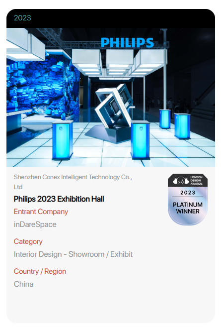 近日,國際知名設計賽事倫敦設計獎(London Design Awards)公布獲獎名單,飛利浦智能鎖2023廣州建博會展館從全球眾多參賽作品中脫穎而出,榮獲2023倫敦設計獎最高級別獎項——鉑金獎!
